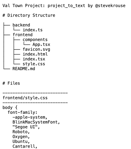 Export vals to text consumable by LLMs