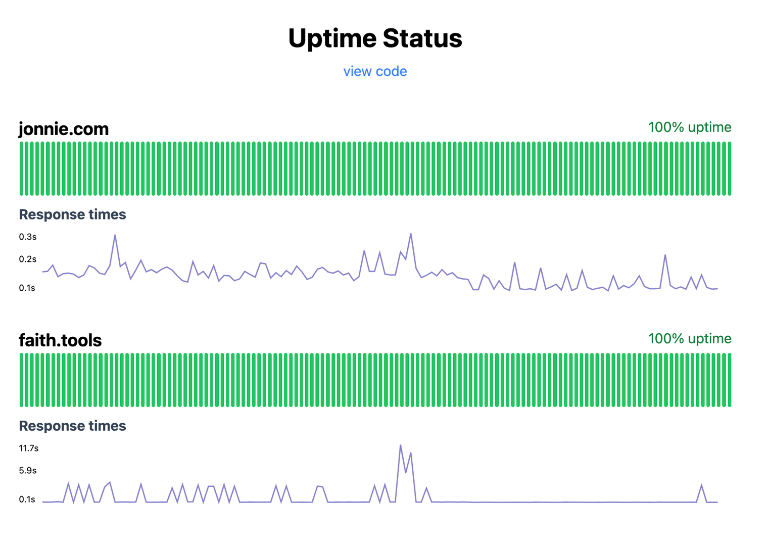 This val is the status page for the data generated by this uptime cron: @stevekrouse/uptime