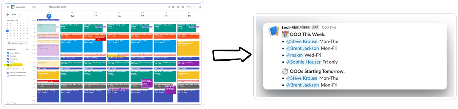 Sends PTO reminders to Slack from shared team Google Calendar