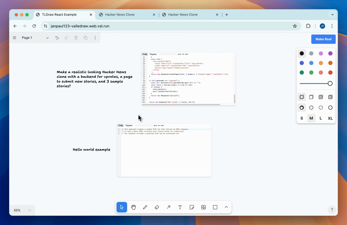 LLM code generation for vals, on a canvas! Make apps with a frontend, backend, and database.