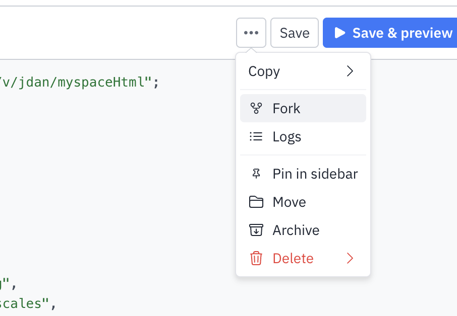 Click "..." and select Fork to create your own.