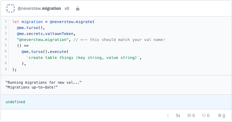 By calling this val, you can easily handle migrations in your Val Town Turso Database.