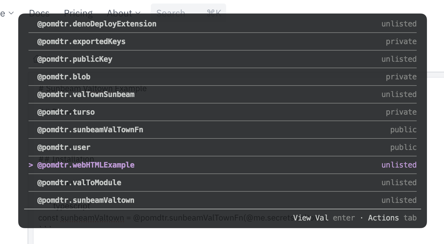 const sunbeamValtown = @pomdtr.sunbeamValTownFn(@me.secrets.valtown)