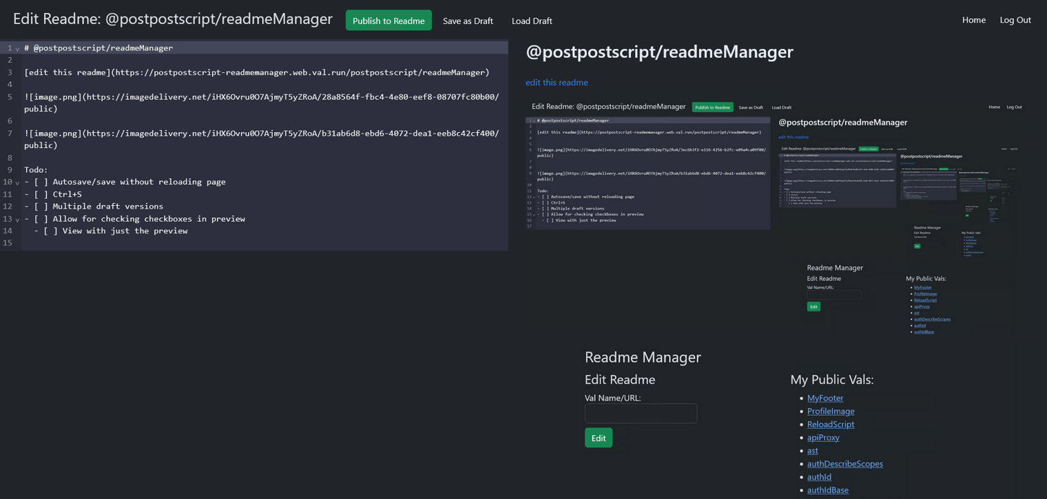 @postpostscript/readmeManager: Edit Val Readmes With Persistent Drafts