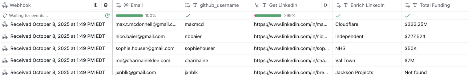 Scrape users from any GitHub repo, and automatically ingest into Clay. This val scrapes the username of anyone who has created an issue, reacted to an issues, commented on an issue, reacted to the comments, starred, or forked any repo.