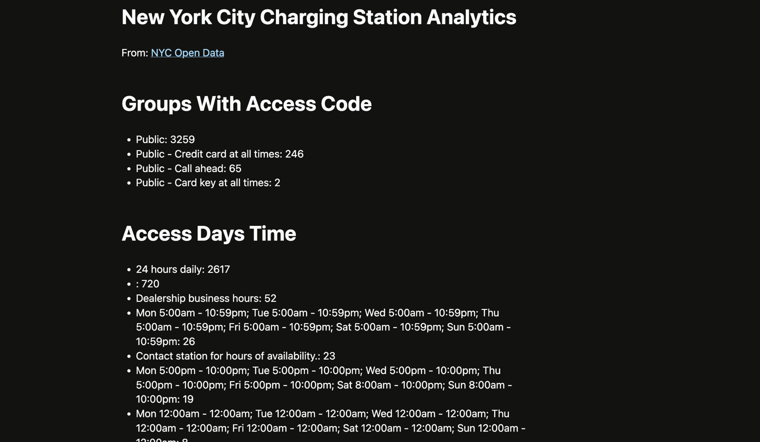 This analyzes some open data about electric car charging stations in New York State and bakes a website from it. Data is messy!