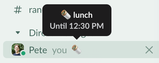 In Slack you can set your status within your company's workspace to let coworkers know that you're in a meeting, on an airplane, eating lunch, walking your dog, on vacation, at the dentist, biking to work, or whatever. On Discord your status is global, so your friends from your board game server will see that you're flying to nyc (for better or worse). I've found status quite helpful for healthy and honest remote teams (and toxic for unhealthy teams where "shaking the mouse" optics/gamification emerges).