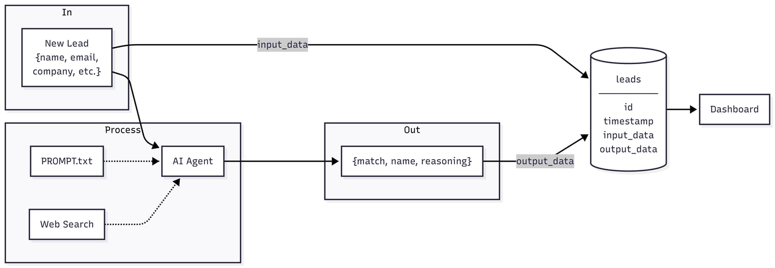 - When a new lead comes in via POST, it is sent to the OpenAI agent in